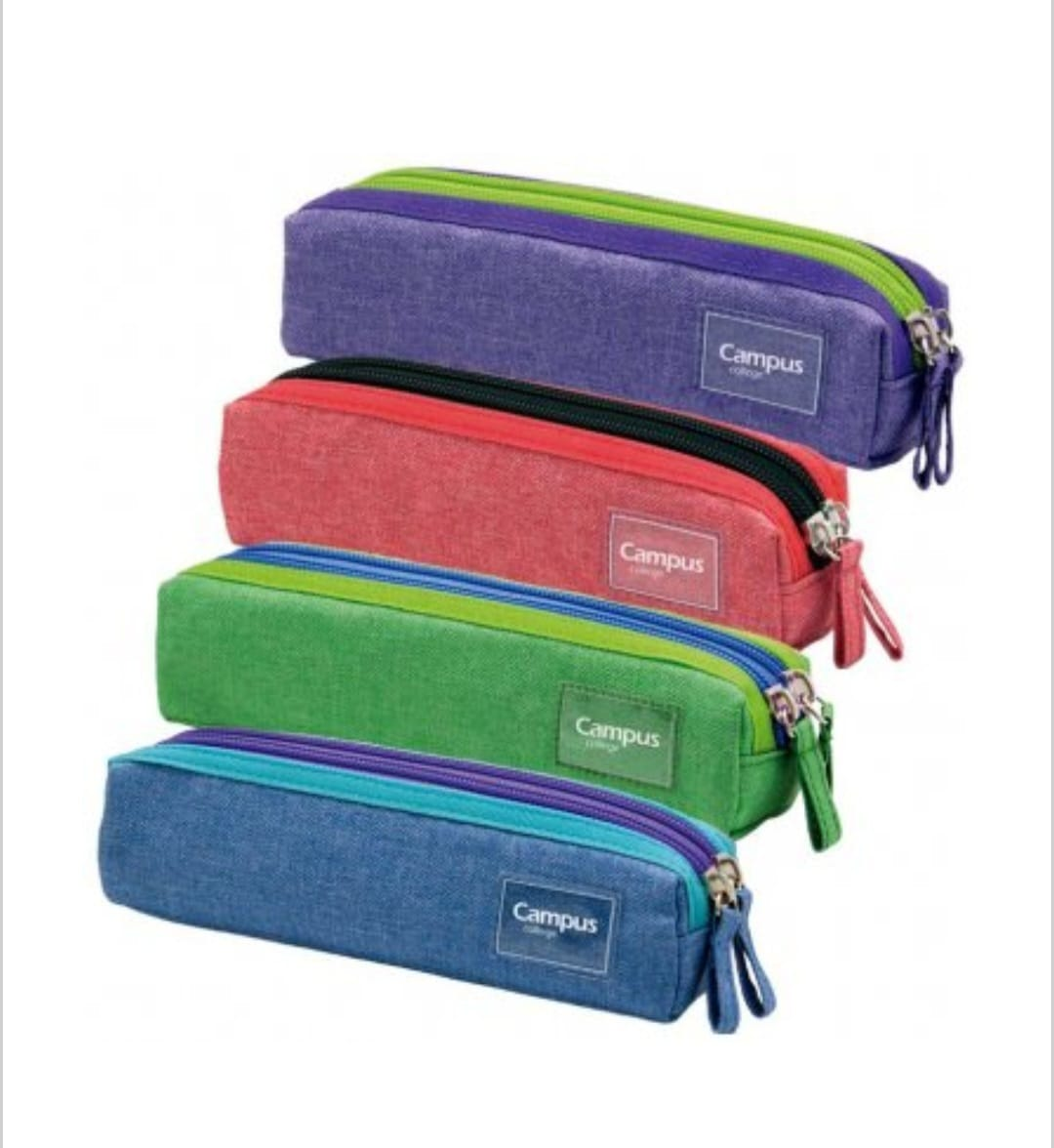 Estojo da gama Campus, ideal para guardar material escolar ou de escritório de forma prática e organizada. Com design moderno e confecção em material resistente, oferece espaço suficiente para transportar canetas, lápis, marcadores, borrachas e outros acessórios essenciais. Fecho em zíper de alta qualidade para maior durabilidade e segurança. Disponível em várias cores e padrões, adaptando-se a diferentes estilos e preferências.